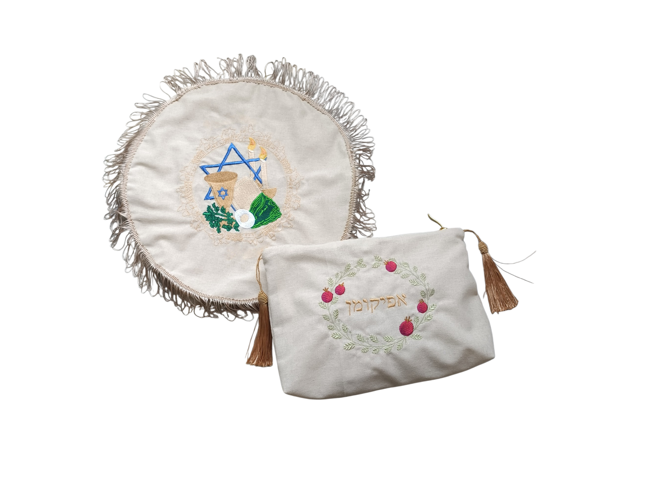 Kit Completo de Pessach – Capa de Matzá e Bag de Afikoman Bordadas